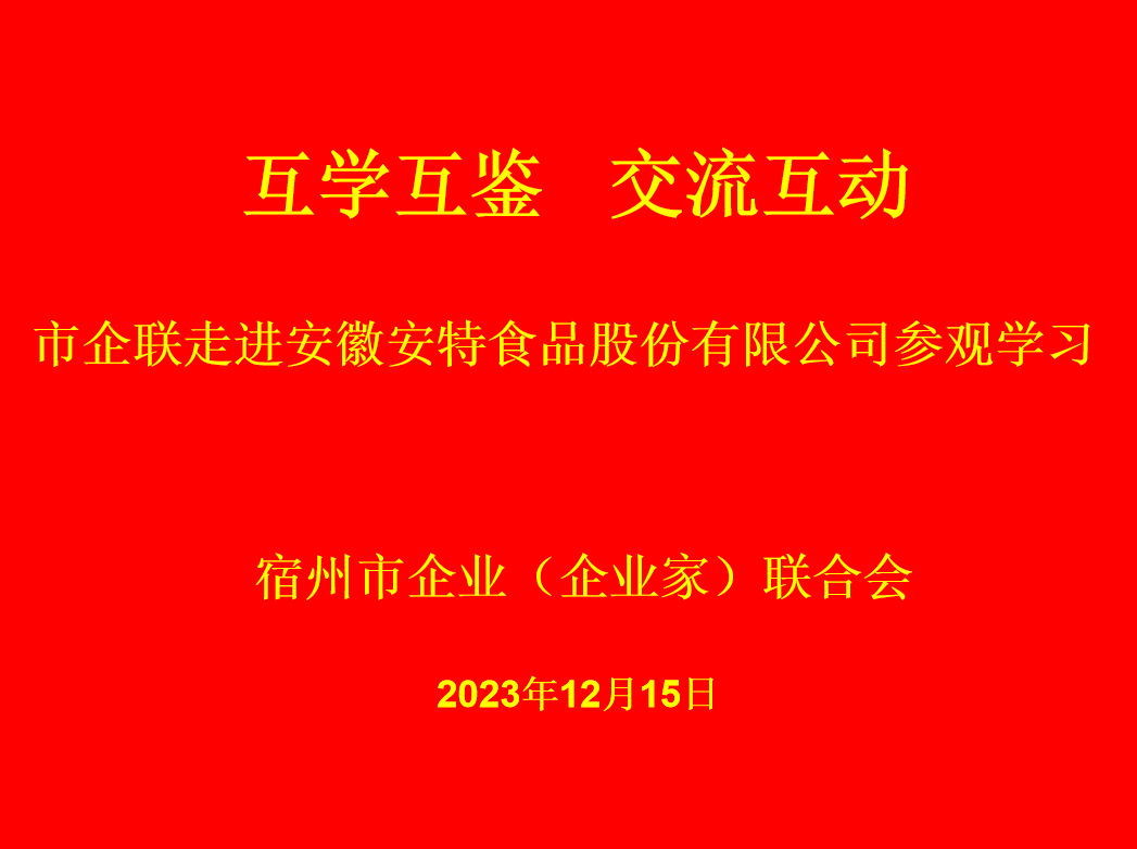 12月15日下午,市企業(yè)(企業(yè)家)聯(lián)合會組織30余家會員單位走進(jìn)安徽安特食品股份有限公司參觀學(xué)習(xí)、交流互動。